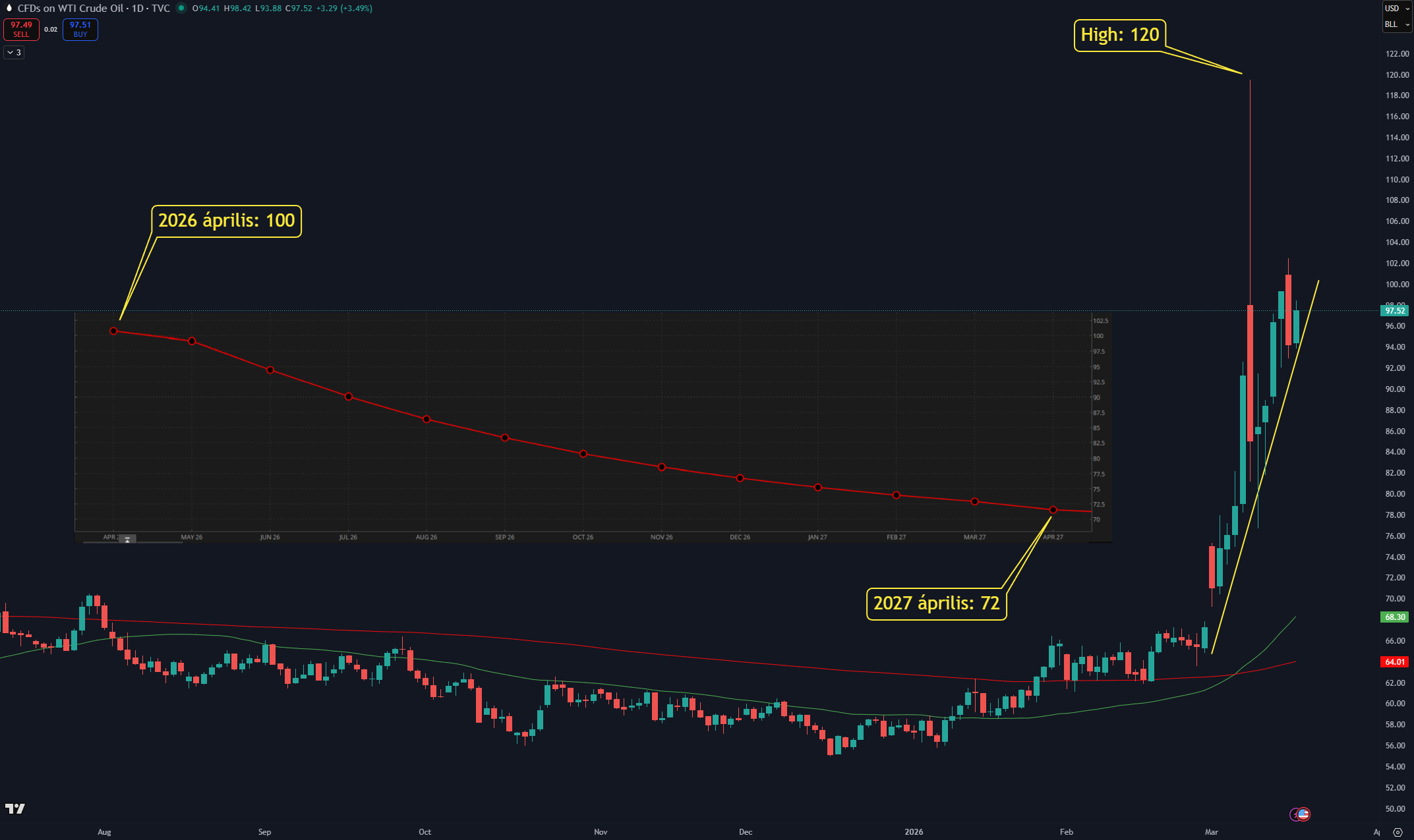 Amíg ez a szerkezet fennmarad, addig az olaj jó eséllyel nemcsak az energiaszektort, hanem a teljes piaci hangulatot is érdemben befolyásolja. Ezért most nem elég csak az árfolyamot nézni. Aki érteni akarja, mit üzen a piac, annak a futures görbe alakját is figyelnie kell.